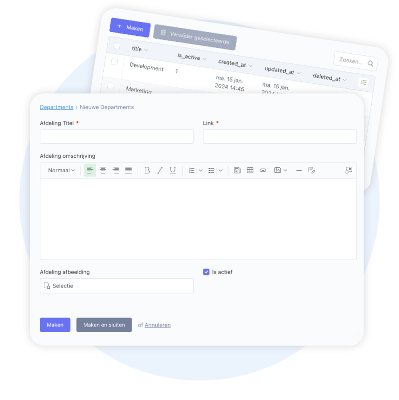 Koppel teamleden aan afdelingen voor een gestructureerde weergave op je website. Dit maakt het eenvoudig voor bezoekers om de juiste contactpersoon te vinden.