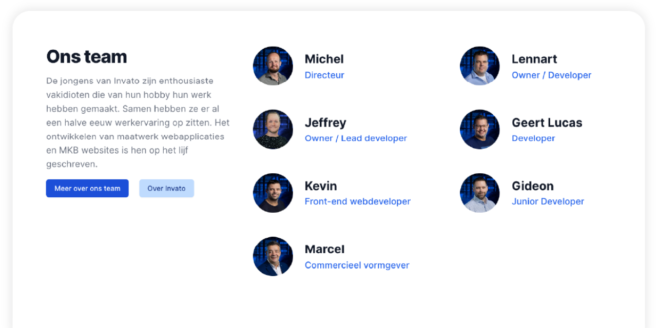Voeg eenvoudig teamleden toe aan je website en presenteer ze in de stijl van jouw bedrijf.