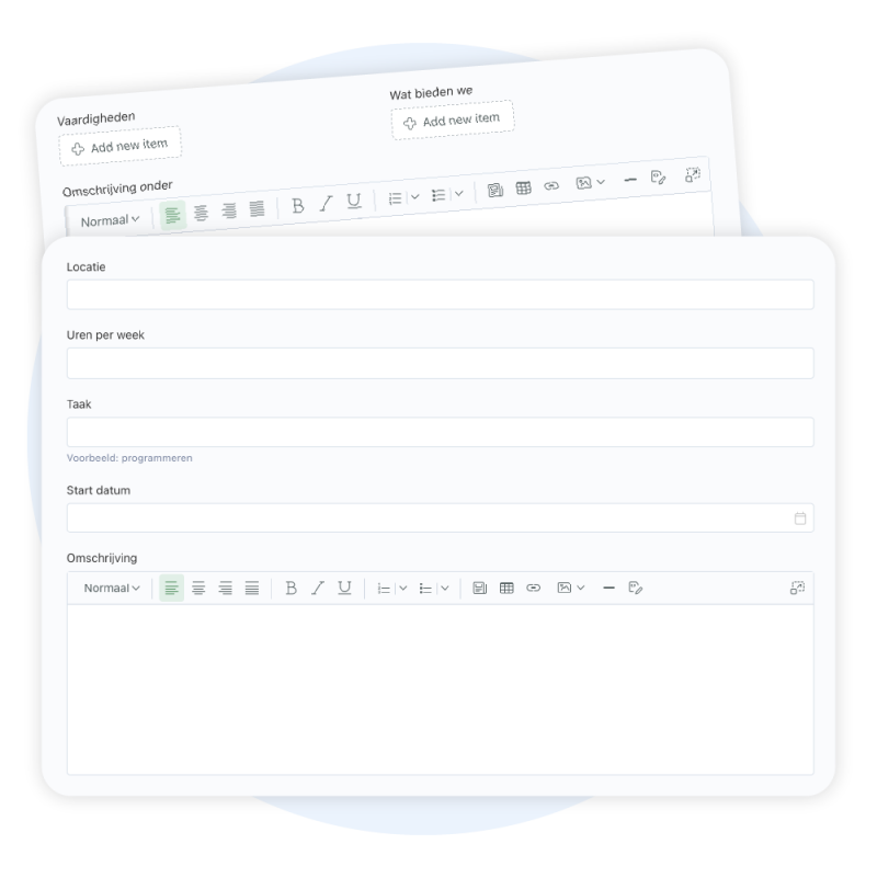 Absoluut. Je kunt alle relevante details van een vacature invullen, inclusief vereiste vaardigheden, ervaring, locatie en uren per week. Dit helpt bij het aantrekken van de meest geschikte kandidaten.